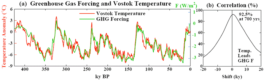 The Correlation between Temperature and Carbon Dioxide Concentration in the Vostock Ice Cores[1].